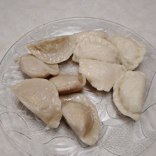 Both brands were potato and cheese. On the left we have Alexandra's and on the right are Tata's. I found them both to be highly tasty with Tata's having a thinner and lighter dough. I found their filling saltier as well more heavily seasoned. Not too salty nor too heavily seasoned; just done with a slightly heavier hand.