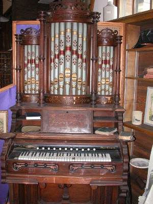 One section was devoted to churches. There was a pew and several 100+ year old Bibles. The Bibles were huge with covers nearly ¼" thick and well over 1,000 pages. These suckers needed a sturdy lecturn. In addition, there was a really neat old organ.