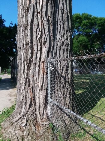 Walking around the perimeter I noticed that this rather old tree has gobbled up a fencepost.