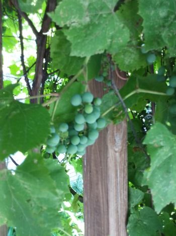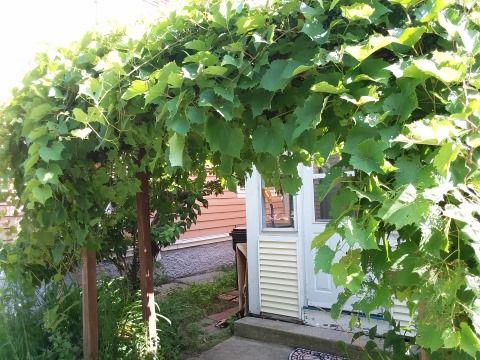Plus I walked by the house of an aspiring vintner that has a trellis arch out front that has grapes growing on it.