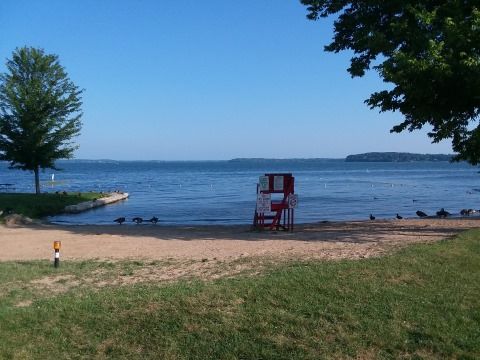 Not a place to pitch a wang dang doodle or even throw a frisbee around, it does have a nice view of the lake and serves well for some quiet contemplation.