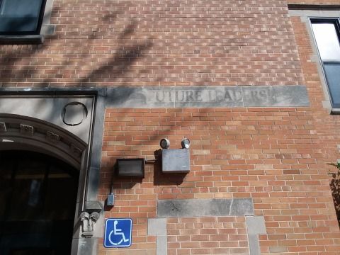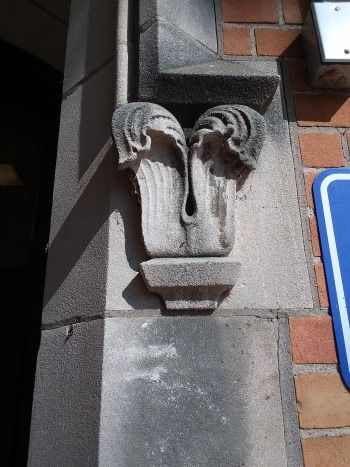 Considering the building's age, I would expect some more adornment on the exterior. Nothing outrageous but the building was just a little plain. Still, there were some neat bits such as these bas relief hoolies that flanked a doorway on the southeast side of the building.