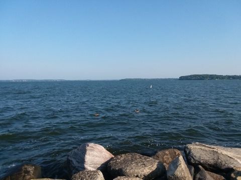 I walked out onto the breakwater which gets you a goodly ways from the shore and affords some nice views of Lake Mendota.