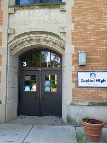 The morning began with dropping off my car at the car wash joint that sadly no longer has a giant octopus out front on East Washington just south of Ingersoll. From there I moseyed over to Lapham Elementary School which was apparently built in 1939.