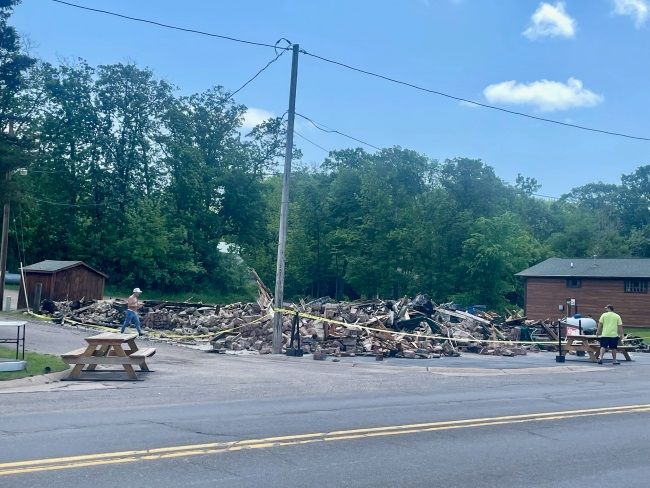 Bad news from up north. Ryan Urban, an intrepid editor and reporter for the Barron News-Shield texted me saying that the Stone Lake Pub had burned down. This depressing photo was attached: