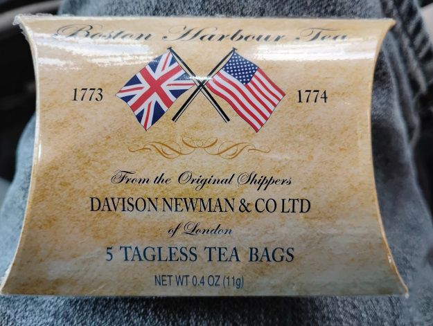 While in Concord I picked up some Boston Harbor Tea, a (theoretically) fine blend of teas by the same company whose tea was thrown overboard during the Boston Tea Party.