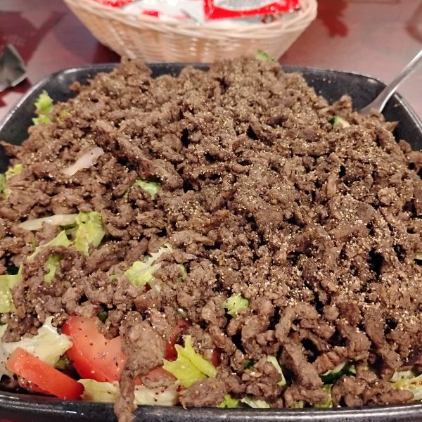 A friend and I had dinner at Petra Bakery and Restaurant last week and it was mighty tasty. I had the Shawarma topped Fattoush Salad - beef shawarma.
