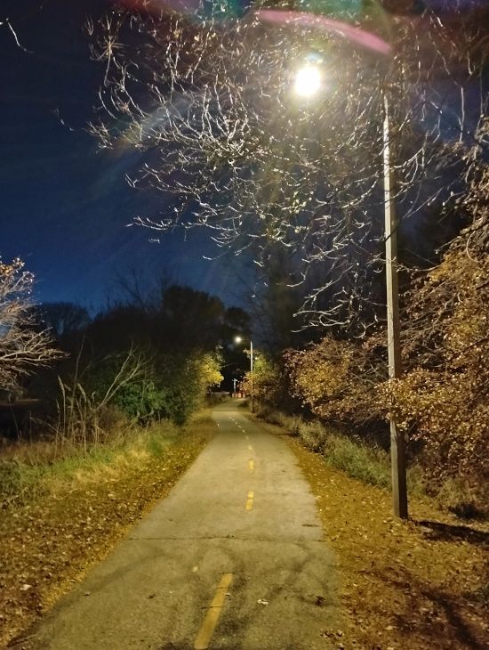 Not much daylight for my pre-work walk this morning. Orion was in the sky but he was all fuzzy as I didn't wear my glasses. I traipsed down the bike path to Commerical and took it to the dead end to the east and found a path through the shrubbery to East Washington. It's fun getting to know the new neighborhood. I also found a small but lovely little pine stand at the end of Oak Strasse.