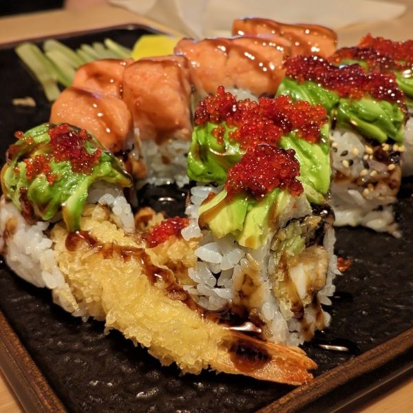 My salad was fine and the cucumber-avacado roll I ordered proved a fine vehicle for large doses of wasabi. The kid enjoyed the King roll and another type that was all decked out.