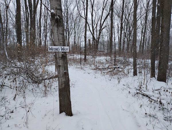 He explained that his New Year's resolution was to get out on his bike more often and he figured he'd start on day 1. In addition, he told me that there was another biker out as well and I surmised it was this person's tracks that I had followed into the woods. Before long my interlocutor was off and I continued my trek down the path.