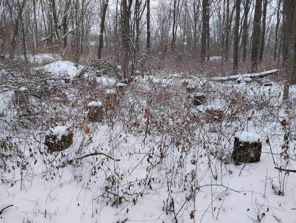 A nearby oak tree had decided not to shed its leaves and the brown & tan hues added a slight hint of color to the otherwise white and grey landscape.