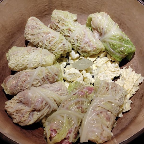 It was decided to use savoy cabbage instead of white. Regardless of which variety I used I still needed a stock pot to boil the head of wrapper leaves in. Someone helpfully pointed out a very affordable 8-quart model at Farm & Fleet which was purchased that morning while running errands.