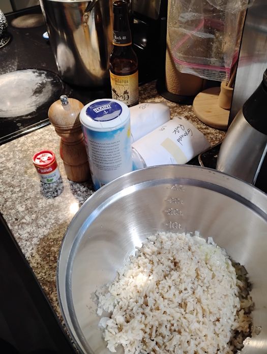 The filling was prepared first and the process aided by several sips of some Back 40 bock which had been promoted from chili ingredient to chef lubricator. I used a mix of ground pork and beef from Meat People. Many thanks to the gentleman there who ground the pork as I waited.