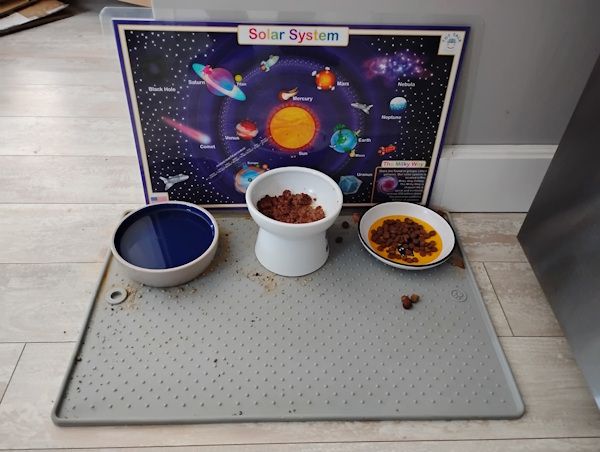 I found Piper poop on her cardboard cat scratch bed. It happened a couple days in a row and then it stopped. A couple days or so later it occurred to me that I have not scooped any poop from her litter box and now had to find something to relieve her constipation. I made a trip to the pet store and came home with some laxative. It was not to her liking.
