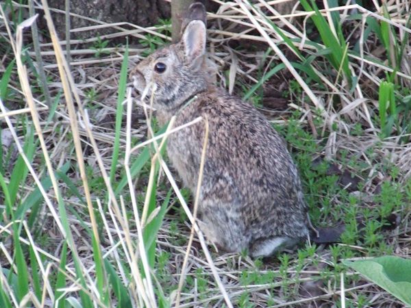 The hawks must all have taken up residence in other neighborhoods because there are rabbits everywhere in the neighborhood. Despite a wealth of photo opportunities none were in focus. Here's the best I could do this morning. Same for squirrels.