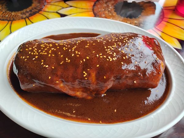 As noted above, El Sabor de Puebla has become a semi-regular stop for me as they have locations on the north and northeast sides - close to home. I splurged one day and got a burrito poblano which is a rather large burrito smothered in rich mole sauce and covered in sesame seeds. OK, not covered but I was going for a Waffle House thing here.