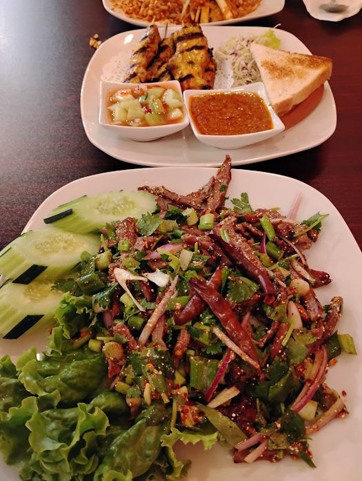 Earlier this week I took my stepson out for dinner. He had a hankering for Pad Thai so we went to his local Thai joint, Thai Boat Noodle. Thai restaurants used to be rare as hen's teeth in these parts but no longer. Perhaps not as numerous as Mexican restaurants, nonetheless Thai places are now rather common. The spring rolls and chicken satay were fine, though I think the dipping sauces could use less sugar and more fish sauce.