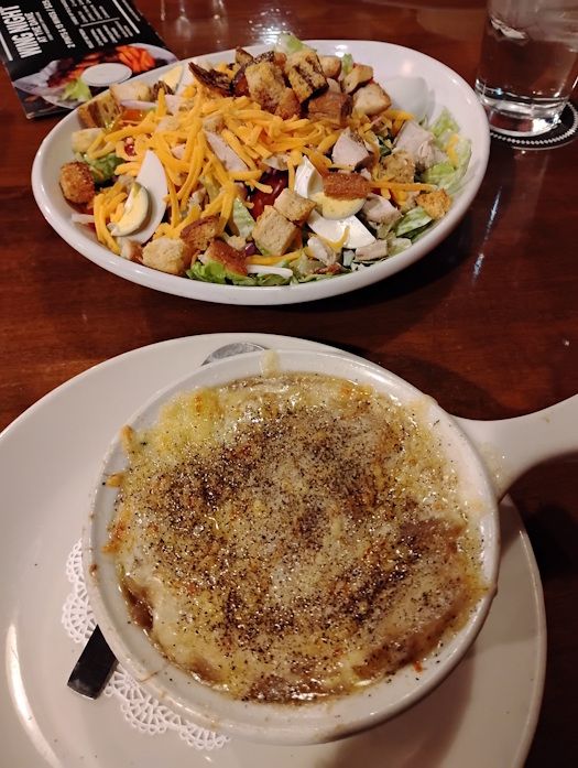 Before the Los Lobos show at the Stoughton Opera House a fellow music lover and I dined at Water Street Tavern. The French onion soup was excellent. It was hot and didn't taste like it had been sitting in a stock pot for hours. There were about 2 pounds of cheese on top so it was a bit of a messy affair.