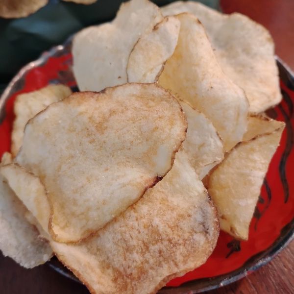 These crisps were nice and crunchy. At first a sweet potato flavor predominated but it was followed by some mild vinegar tanginess. After I chewed some crisps into a paste the potato flavor took on some earthy tones. Although there was a paucity of vinegar zip, there was no shortage of its flavor as these puppies had a wonderful, firm cider vinegar taste. My notes say that I may have tasted sherry but I cannot recall if I tasted it before or after reading the ingredients which includes sherry vinegar powder. No doubt the addition of apple powder boosted my perception of the cider vinegar.